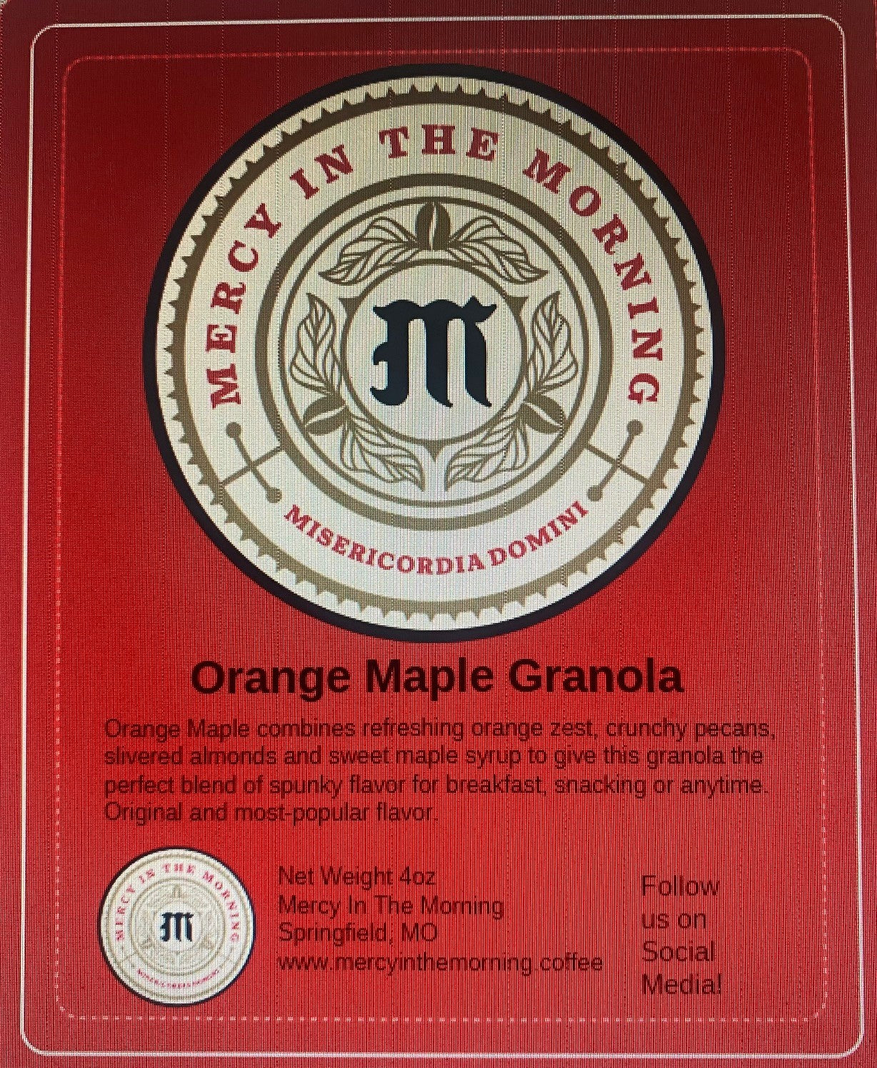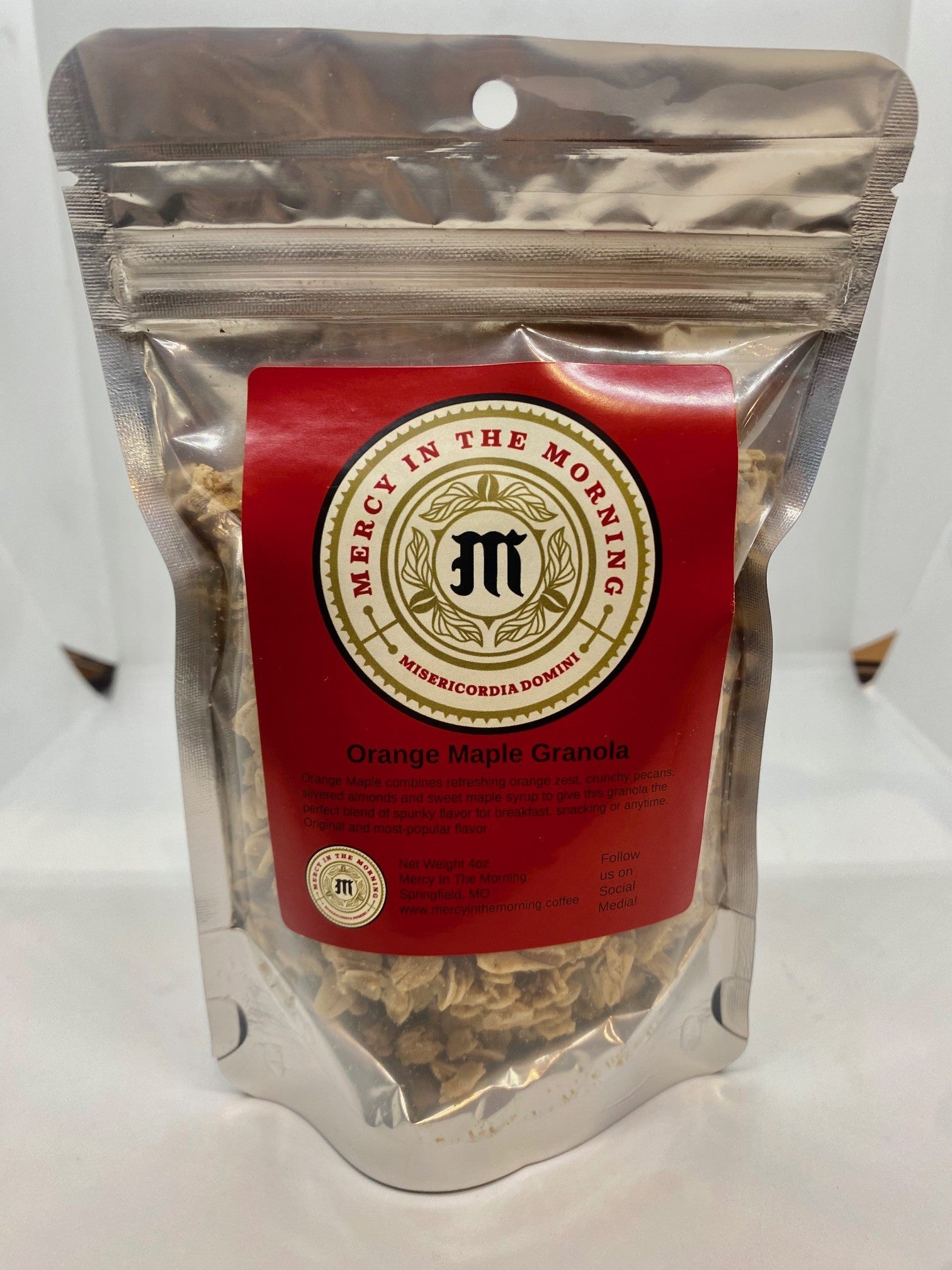 Mercy In The Morning Orange Maple Granola combines refreshing orange zest, crunchy pecans, slivered almonds and sweet maple syrup to give this granola the perfect blend of spunky flavor for breakfast, snacking or anytime. A very popular flavor.